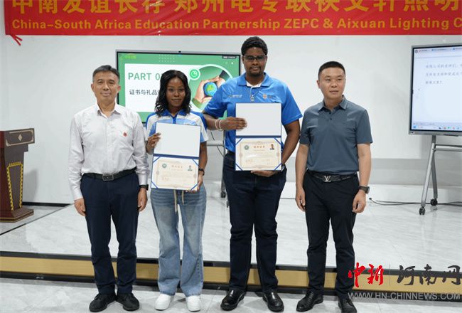 中新河南網(wǎng)6月12日電(曹瑞華) 2025年6月,鄭州電力高等?茖W(xué)校與艾軒照明科技有限公司在中山市共同舉辦南非留學(xué)生結(jié)業(yè)典禮,20名南非師生順利完成在中國的學(xué)習(xí)和實習(xí)任務(wù)。此次結(jié)業(yè)典禮標(biāo)志著鄭州電力高等專科學(xué)校國際化辦學(xué)取得新成果,為中南職業(yè)教育合作增添了新亮點。