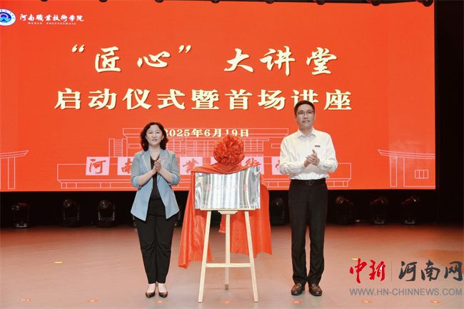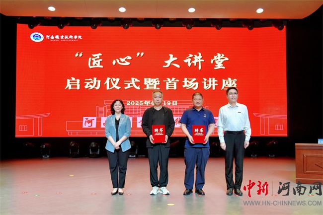 中新河南網(wǎng)6月21日電(秦雪、胡艷) 6月19日下午,河南職業(yè)技術(shù)學(xué)院“匠心”大講堂啟動儀式暨首場講座在音樂廳舉行。校黨委書記厲勵,黨委副書記、校長夏新顏為“匠心”大講堂揭牌,并為鄭州宇通集團有限公司焊接高級技師、焊接質(zhì)量責(zé)任人牛東昌和河南航天液壓氣動技術(shù)有限公司特級技師彭戰(zhàn)良兩位校友頒發(fā)企業(yè)導(dǎo)師聘書。校領(lǐng)導(dǎo)李玉峰、朱永寬出席啟動活動。活動由校黨委副書記、工會主席田華主持。