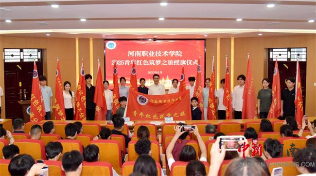 中新河南網(wǎng)6月22日電(尹霞) 6月19日上午,河南職業(yè)技術(shù)學(xué)院2025年“青年紅色筑夢之旅”活動授旗儀式在勤業(yè)樓239會議室舉行。校黨委書記厲勵為紅旅分隊授旗并作動員講話。校黨委委員、副校長任楓軒出席儀式。各二級學(xué)院黨總支書記、副書記、雙創(chuàng)專干以及13支紅旅分隊師生共計140余人參加活動。
