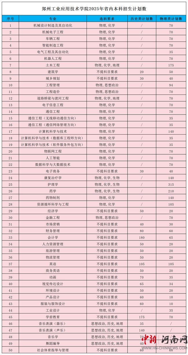 鄭州工業(yè)應(yīng)用技術(shù)學(xué)院2025年省內(nèi)本科、專科招生計(jì)劃公布