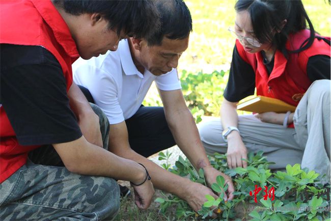 基地負責(zé)人為實踐團示范花生授粉的具體細節(jié)
