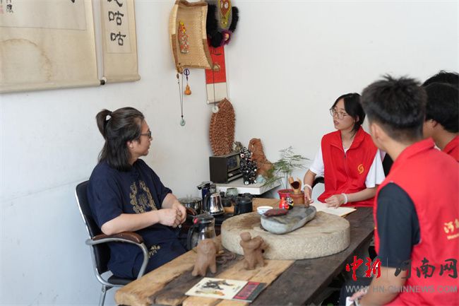 7月6日,實踐團走進浚縣楊玘屯村,專訪國家級非物質(zhì)文化遺產(chǎn)“浚縣泥咕咕”代表性傳承人王紅瑞。王紅瑞向成員們展示了工作室的豐富藏品,詳細講解了作品的制作工藝、文化寓意與靈感來源。他特別強調(diào):“每一個泥咕咕都是?h人民智慧的結(jié)晶,承載著深厚的文化記憶。”實踐團成員在王紅瑞指導(dǎo)下,現(xiàn)場體驗了揉泥、塑形、扎哨口等制作環(huán)節(jié)。
