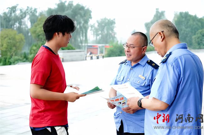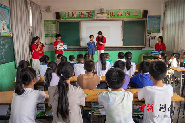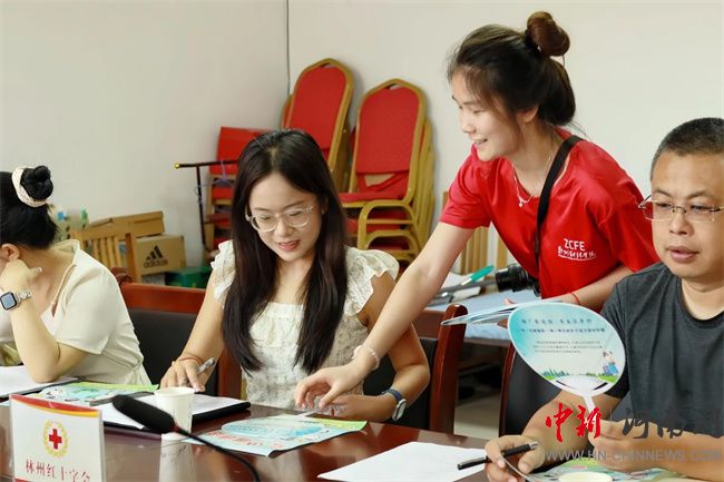 實(shí)踐團(tuán)成員為林州市紅十字工作人員發(fā)放宣傳物料