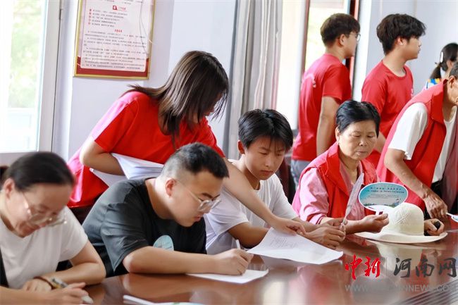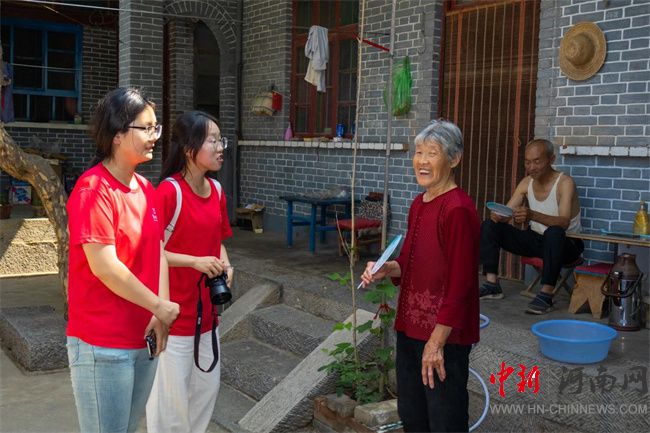 實(shí)踐團(tuán)成員在林州市石板巖小鎮(zhèn)進(jìn)行問卷調(diào)查