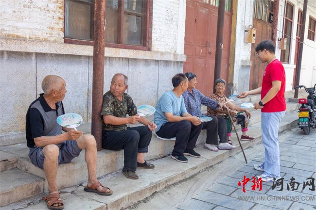 走進(jìn)百年任村進(jìn)士街,團(tuán)隊(duì)成員向商戶、居民發(fā)放推普宣傳頁與宣傳扇,并開展隨機(jī)采訪,收集語言使用一手資料。