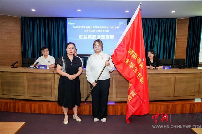 田華為本次“出彩中原”大學(xué)生“逐光而行 智創(chuàng)未來”主題社會(huì)實(shí)踐活動(dòng)授旗。