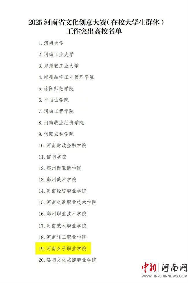 學校將以此為契機,持續(xù)優(yōu)化“賽教融合”機制,進一步加強文化創(chuàng)意學科建設,培育更多具備創(chuàng)新視野與實踐能力的優(yōu)秀藝術人才,為推動河南省文化創(chuàng)意產(chǎn)業(yè)發(fā)展貢獻力量。(河南女子職業(yè)學院供稿)