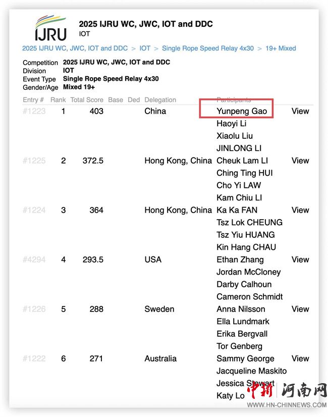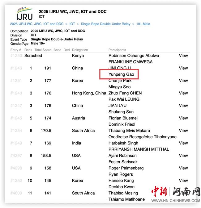 高云鵬是河南女子職業(yè)學(xué)院體育與健康學(xué)院運動健康指導(dǎo)專業(yè)23級學(xué)生,他在跳繩項目上已訓(xùn)練長達六年。去年12月,他在全國跳繩錦標(biāo)賽中脫穎而出,獲得入圍世錦賽的資格。在今年6月結(jié)束的2025全國跳繩聯(lián)賽(長沙站)中,他一舉奪得了個人花樣跳、30秒單搖跳、3分鐘單搖和4×30秒單搖接力四項冠軍。