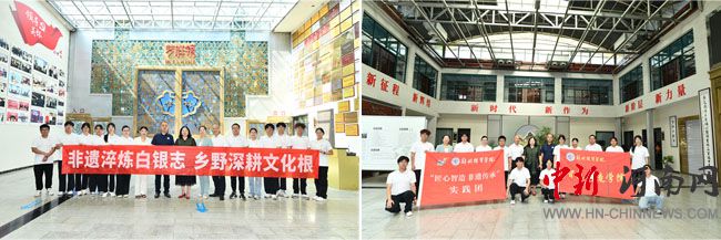 7月3日,實踐團(tuán)成員順利抵達(dá)夢祥銀創(chuàng)小鎮(zhèn)。首站來到集展覽、教育、研究功能于一體的夢祥銀宮博物館——這座跨越古今、融匯中外的文化殿堂,館內(nèi)設(shè)6大展廳,藏有上千件珍貴文物,系統(tǒng)展陳了歷代中國銀飾、銀器的經(jīng)典之作。跟隨著講解員的腳步,成員們漫步展廳,細(xì)細(xì)觀賞器物上精美細(xì)膩的紋飾與質(zhì)樸本真的色澤,在銀器制作的精妙工藝?yán)镉|摸歷史的厚重,在每件藏品的故事中梳理白銀發(fā)展的脈絡(luò),沉浸式感受非遺文化的獨特魅力。為深入探究銀制品的生產(chǎn)奧秘,實踐團(tuán)隨后走進(jìn)白銀智能車間,實地探訪產(chǎn)品從設(shè)計到成型的全流程。在銀飾制作區(qū),“一錘一鏨一匠心 一師一界一乾坤”的標(biāo)語格外醒目:鏨刻工藝在銀器表面雕琢出細(xì)膩如絲的紋理,掐絲工藝將細(xì)絲勾勒得精巧靈動,點藍(lán)工藝讓色彩在釉料中流轉(zhuǎn)生韻,琺瑯工藝更將器物裝點得精美絕倫……每一道工序都令成員們驚嘆不已。然而這般精美背后,是工匠們指腹磨破、老繭層疊的付出。一位深耕行業(yè)十余年的老師傅坦言:“沒有這層層老繭,哪能敲打出紋路清晰、肌理分明、質(zhì)感十足的器物?看著自己親手打磨出的新飾品,心里才叫踏實。”此情此景,讓實踐團(tuán)成員真切體會到“守”藝人精益求精的堅守,更讀懂了大國工匠精神的深刻內(nèi)涵;顒游猜,團(tuán)隊走進(jìn)夢祥黨建室,通過一張張照片、一段段文字,了解了企業(yè)發(fā)展歷程中浸潤的紅色基因,深切體會到黨組織在企業(yè)成長壯大中的引領(lǐng)力量。