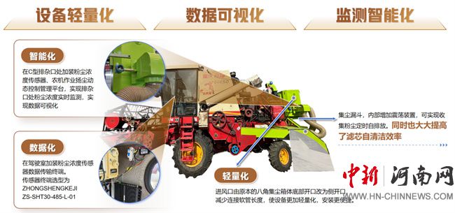 智能化:在C型排雜口處加裝粉塵濃度傳感器、農(nóng)機作業(yè)揚塵動態(tài)控制管理平臺,實現(xiàn)排雜口處粉塵濃度實時監(jiān)測,實現(xiàn)數(shù)據(jù)可視化。