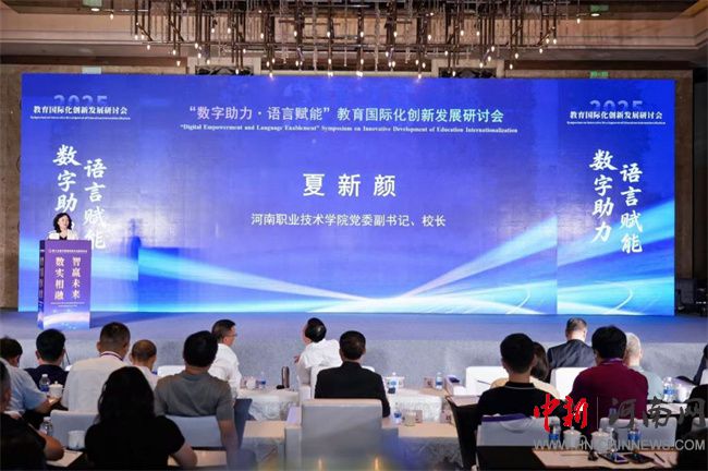 中新河南網(wǎng)8月31日電(郭一幔) 8月28日上午,“數(shù)字助力,語(yǔ)言賦能”教育國(guó)際化創(chuàng)新發(fā)展研討會(huì)在鄭州舉辦。海內(nèi)外行業(yè)協(xié)會(huì)、研究機(jī)構(gòu)、高校、職業(yè)院校、出海企業(yè)領(lǐng)導(dǎo)及代表參會(huì)。河南職業(yè)技術(shù)學(xué)院黨委副書記、校長(zhǎng)夏新顏應(yīng)邀出席并致辭。