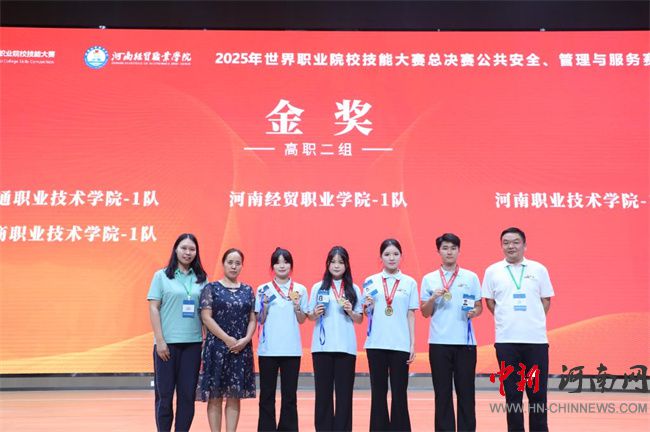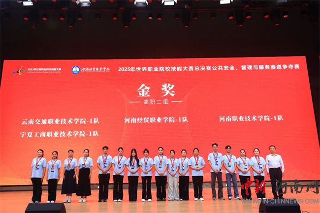 中新河南網(wǎng)9月1日電(徐曉陽) 8月29日,2025年世界職業(yè)院校技能大賽總決賽“公共安全、管理與服務(wù)賽道”爭(zhēng)奪賽在鄭州落幕。河南職業(yè)技術(shù)學(xué)院經(jīng)濟(jì)管理學(xué)院參賽團(tuán)隊(duì)與來自全國30個(gè)省(自治區(qū)、直轄市)的126支高職院校參賽隊(duì)伍同臺(tái)競(jìng)技,憑借精湛的專業(yè)技能、嚴(yán)謹(jǐn)?shù)穆殬I(yè)素養(yǎng)和突出的創(chuàng)新能力,在眾多強(qiáng)隊(duì)中脫穎而出,勇奪金獎(jiǎng)。