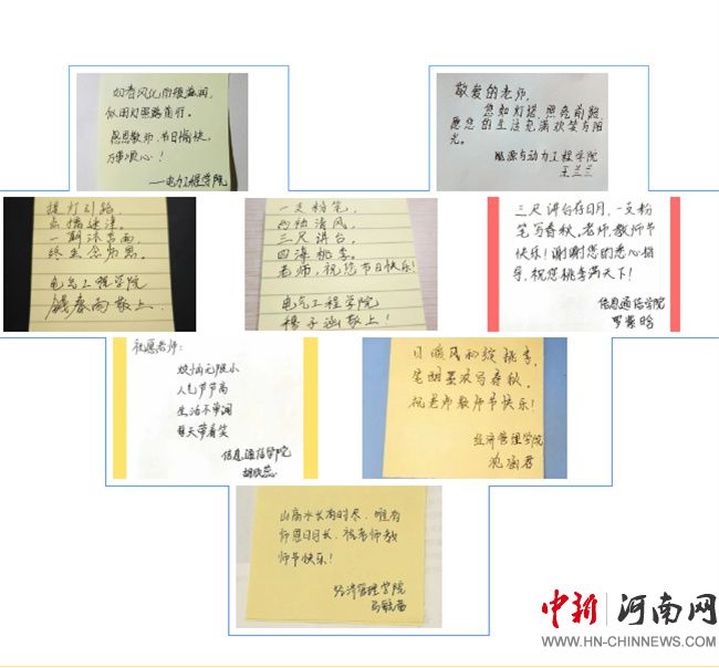 今年教師節(jié),鄭州電專以“以教育家精神鑄魂強師 譜寫教育強國建設華章”為活動主題,秉持務實、簡樸之風,既保證慶;顒勇≈責崃,又力求精簡高效,有序推進各項宣傳慶祝工作。學校先后舉行慶祝第41個教師節(jié)暨表彰大會,對榮獲河南省優(yōu)秀教師、河南省教育系統(tǒng)先進工作者、河南省教育廳學術技術帶頭人等省級榮譽稱號的教師,以及校級優(yōu)秀教師(培訓師)和“三全育人”先進個人進行了表彰。同時在慶;顒又型怀鰩煹聨燂L第一標準,加大優(yōu)秀教師典型選樹和先進事跡的挖掘宣傳,讓身邊的教師典型帶動感召更多的教師見賢思齊。利用網站和“兩微一端”等新媒體宣傳平臺,全方位、立體式宣傳廣大教師立德樹人先進事跡,引導廣大教師爭做大先生,做學生為學、為事、為人的示范。此外,該校學生工作部以“‘xin’意致師恩”為主題,開展“馨”花傳敬意、“新”贊送老師、“信”載學子情、“心”意表祝福四個主題活動,傳遞對教師的感恩與節(jié)日祝愿,進一步烘托出節(jié)日氛圍。