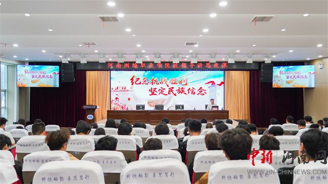 中新河南網(wǎng)9月20日電 為深切緬懷抗戰(zhàn)英烈,弘揚(yáng)偉大抗戰(zhàn)精神,引導(dǎo)青年學(xué)生堅定理想信念、厚植家國情懷,9月18日下午,河南測繪職業(yè)學(xué)院校長張凌杰以“紀(jì)念抗戰(zhàn)勝利 堅定民族信念”為主題,為測繪技術(shù)產(chǎn)業(yè)學(xué)院本科生講授了一堂專題思政課。
