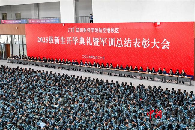 9月20日上午,鄭州財經(jīng)學院2025級新生開學典禮暨軍訓總結表彰大會在航空港校區(qū)體育中心隆重舉行。理事長牛欽民、黨委書記馬治軍、校長吳中等校領導班子成員出席大會,各二級學院院長、黨總支書記、各職能部門負責人、全體教官及2025級新生參加大會,副校長陳靜主持大會。