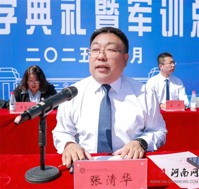 校長張清華向承擔(dān)本次軍訓(xùn)任務(wù)的部隊贈送錦旗,以感謝部隊對學(xué)校國防教育與學(xué)生素質(zhì)培養(yǎng)工作的大力支持。隨后,張校長立足學(xué)校育人定位與國家發(fā)展需求,以《立鴻鵠志,練真本領(lǐng)》為題,為全體2025級新生講授了一堂既有思想高度、又有實踐溫度的開學(xué)第一課。