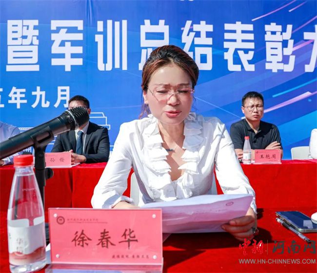 副校長徐春華宣讀《林州建筑職業(yè)技術(shù)學(xué)院關(guān)于表彰2025級新生軍訓(xùn)先進集體和先進個人的決定》