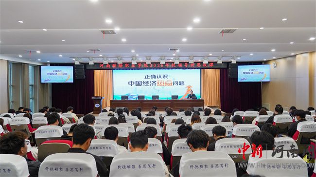 中新河南網(wǎng)9月26日電(文/劉春應(yīng) 圖/茹奕瑞) 為全面落實立德樹人根本任務(wù),充分發(fā)揮學(xué)校領(lǐng)導(dǎo)干部在思想政治教育主渠道中的引領(lǐng)示范作用,9月23日下午,河南測繪職業(yè)學(xué)院紀委書記郭書克在多功能報告廳以《正確認識中國經(jīng)濟熱點問題》為題,為經(jīng)濟管理學(xué)院、體育學(xué)院師生講授專題思政課。