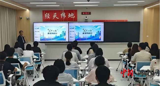 陳宏章圍繞“十四五”規(guī)劃實施的時代背景、關(guān)鍵任務(wù)與實踐要求展開講解,結(jié)合國家發(fā)展成就與學(xué)校育人使命,用詳實數(shù)據(jù)、生動案例闡述規(guī)劃對教育領(lǐng)域的戰(zhàn)略部署,強(qiáng)調(diào)青年一代在決勝“十四五”進(jìn)程中的責(zé)任擔(dān)當(dāng)。他鼓勵師生立足崗位與學(xué)業(yè),將個人發(fā)展融入國家戰(zhàn)略,以實干精神為規(guī)劃落地貢獻(xiàn)力量。