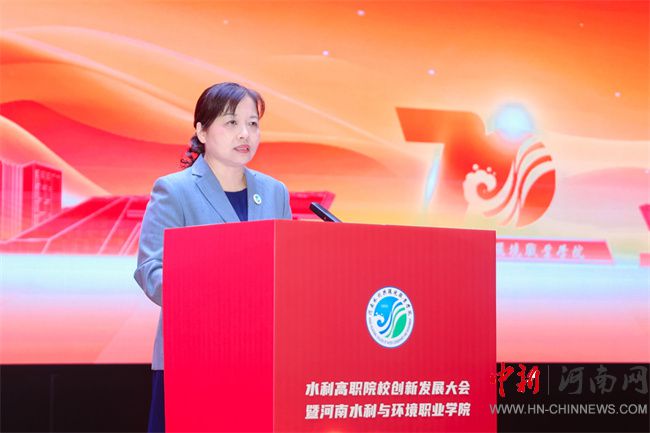 隨后,河南水利與環(huán)境職業(yè)學院校長李志萍發(fā)表了題為《深耕水利職教七十載 譜寫創(chuàng)新發(fā)展新篇章》的工作報告。她系統(tǒng)梳理了學校從“因水而建”的初創(chuàng)期、“依水而興”的發(fā)展期到“循水而進”的跨越期的奮進歷程。從百業(yè)待興的1955年到全面振興的2025年,河南水環(huán)學院三遷校址、八易校名,在水利事業(yè)和職業(yè)教育事業(yè)由小變大、由弱變強的歷史進程中,走過了初心如磐、薪火相傳、求實奮進的70年。