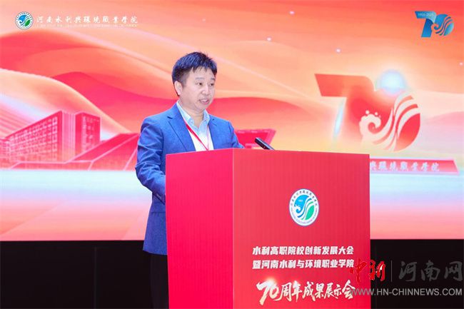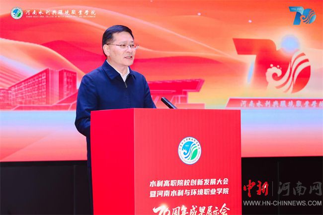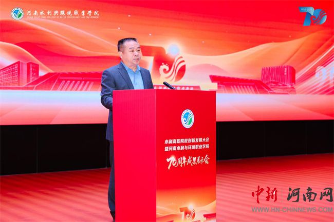 中新河南網(wǎng)10月14日電 七秩芳華,水利千秋。10月12日,河南水利與環(huán)境職業(yè)學院校園內高朋滿座、勝友如云,水利高職院校創(chuàng)新發(fā)展大會暨辦學70周年成果展示會在此隆重舉行。河南省教育廳黨組成員、省委教育工委專職副書記劉林亞,河南省水利廳黨組成員、副廳長、一級巡視員劉玉柏,河南省水利廳副廳長祝云憲等各級領導、兄弟院校代表、行業(yè)企業(yè)嘉賓、各界校友及在校師生齊聚一堂,共慶學校七十華誕,共謀水利職業(yè)教育創(chuàng)新發(fā)展大計。