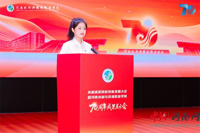 河南省教育廳黨組成員、省委教育工委專職副書記劉林亞在致辭中表示,“在職業(yè)教育發(fā)展進程中,河南水環(huán)學院始終立足中原大地,聚焦產(chǎn)業(yè)需求,為區(qū)域經(jīng)濟發(fā)展培養(yǎng)了大量下得去、留得住、用得上的高素質技能人才。希望學校以建校70周年為新起點,承七秩基業(yè),開未來新篇,展現(xiàn)更大作為。”
