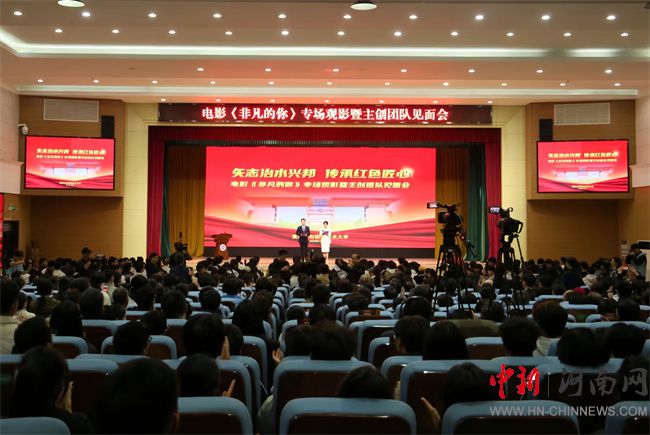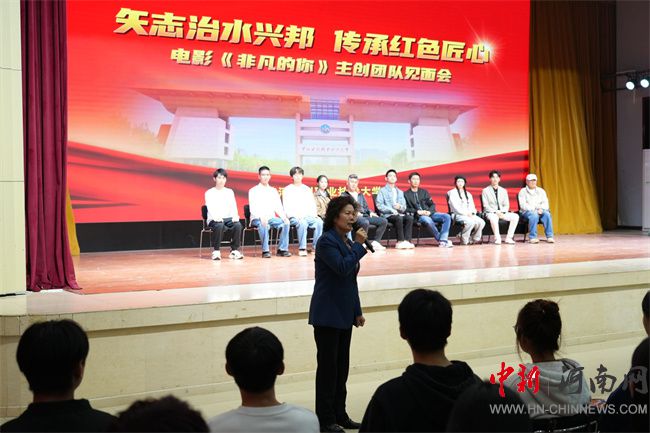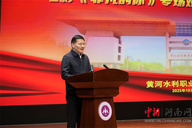 劉林亞致辭。他指出,省教育廳始終將“強(qiáng)化思政引領(lǐng)、推動(dòng)產(chǎn)教融合、培育特色名校”作為工作重點(diǎn),持續(xù)為高校高質(zhì)量發(fā)展保駕護(hù)航。電影《非凡的你》以紅旗渠設(shè)計(jì)師、黃河水利職業(yè)技術(shù)大學(xué)杰出校友吳祖泰為原型,生動(dòng)詮釋了紅旗渠精神,為全省高校開(kāi)展紅色思政教育提供了一部鮮活的“教材”。希望黃河水利職業(yè)技術(shù)大學(xué)以本次活動(dòng)為契機(jī),進(jìn)一步把紅旗渠精神融入辦學(xué)治校、教書(shū)育人全過(guò)程,培養(yǎng)更多像吳祖泰一樣“有理想、敢擔(dān)當(dāng)、能吃苦、肯奮斗”的新時(shí)代水利人;希望全省高校以《非凡的你》為范例,探索更多“藝術(shù) + 思政”“行業(yè)+育人”新路徑,讓思政育人更有溫度、更接地氣、更入人心;也希望青年學(xué)子們從影片中汲取“不認(rèn)命、不服輸”的力量,把個(gè)人理想融入國(guó)家發(fā)展大局,在技能報(bào)國(guó)、強(qiáng)國(guó)建設(shè)的征程中,書(shū)寫(xiě)屬于自己的“非凡”篇章。