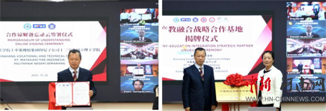 本次跨國合作,在東南亞教育部長組織技術教育發(fā)展區(qū)域中心和東南亞青年可持續(xù)發(fā)展基金會的見證下,新鄉(xiāng)職業(yè)技術學院、中策橡膠集團印尼子公司、印尼三寶壟國立理工學院通過線上平臺同步簽署合作諒解備忘錄,并共同為“產(chǎn)教融合戰(zhàn)略合作基地”揭牌。這一環(huán)節(jié)標志著三方戰(zhàn)略合作伙伴關系的正式建立,為后續(xù)實質性合作的全面展開奠定了堅實基礎。