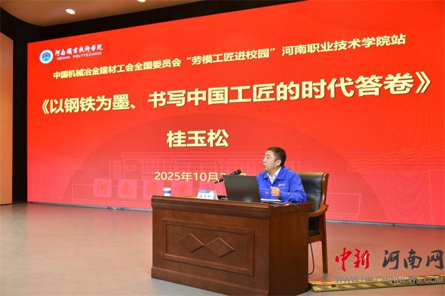 中新河南網(wǎng)10月24日電(王俊嶺) 10月21日下午,河南職業(yè)技術(shù)學(xué)院在音樂(lè)廳舉行“勞模工匠進(jìn)校園”暨“匠心大講堂”報(bào)告會(huì)。全國(guó)勞動(dòng)模范、中國(guó)一重集團(tuán)有限公司重型裝備事業(yè)部桂玉松,全國(guó)勞動(dòng)模范、方大特鋼科技股份有限公司甘榮剛應(yīng)邀作專題報(bào)告。中國(guó)機(jī)械冶金建材工會(huì)副主席張杰、冶金工作部部長(zhǎng)王欣,有色金屬工業(yè)人才中心主任助理趙麗霞,河南省機(jī)械冶金建材工會(huì)主席呂慶,河南省教科文衛(wèi)體工會(huì)二級(jí)調(diào)研員李陶營(yíng);校黨委副書(shū)記、工會(huì)主席田華,校黨委委員、副校長(zhǎng)朱永寬,學(xué)校相關(guān)單位師生代表參加報(bào)告會(huì)。