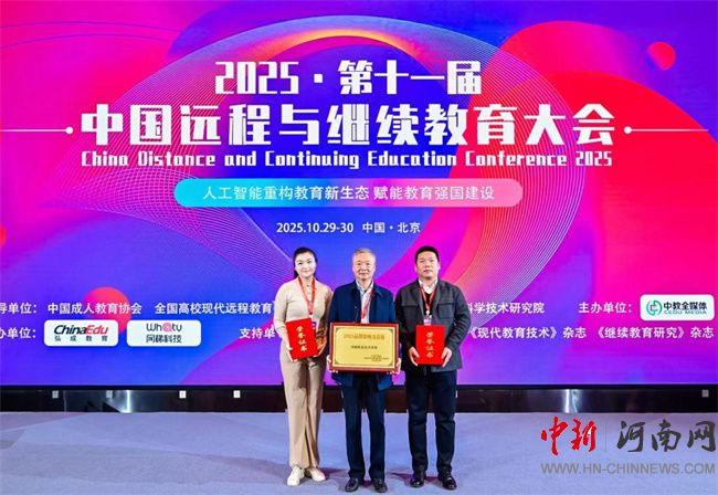 中新河南網(wǎng)11月2日電(何津驍 黃菲) 10月29日至30日,第十一屆中國(guó)高校遠(yuǎn)程與繼續(xù)教育大會(huì)在北京召開。本屆大會(huì)以“人工智能重構(gòu)教育新生態(tài) 賦能教育強(qiáng)國(guó)建設(shè)”為主題,來(lái)自全國(guó)各地高校、開放大學(xué)、教育企業(yè)、行業(yè)協(xié)會(huì)、專業(yè)媒體等千余位嘉賓和代表相聚北京,共商遠(yuǎn)程教育與繼續(xù)教育質(zhì)量提升新路徑。大會(huì)公布了有關(guān)榮譽(yù)獎(jiǎng)項(xiàng),學(xué)校獲“品牌影響力高校”和兩項(xiàng)優(yōu)秀案例獎(jiǎng)。河南職業(yè)技術(shù)學(xué)院黨委委員、副校長(zhǎng)李玉峰帶領(lǐng)繼續(xù)教育學(xué)院負(fù)責(zé)人參會(huì)。