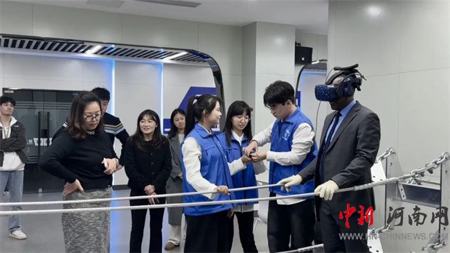 作為電力學(xué)院常態(tài)化志愿服務(wù)與國(guó)際化辦學(xué)展示相結(jié)合的品牌項(xiàng)目,本次接待任務(wù)主要由志愿服務(wù)隊(duì)的師生骨干承擔(dān)。在220kV智能變電站實(shí)訓(xùn)基地,志愿者們運(yùn)用扎實(shí)的電力專(zhuān)業(yè)知識(shí)和流暢的英語(yǔ)溝通能力,主動(dòng)為來(lái)賓系統(tǒng)講解了智能變電站的設(shè)備原理與教學(xué)應(yīng)用。他們沉著自信的現(xiàn)場(chǎng)表現(xiàn)、細(xì)致周到的服務(wù)引導(dǎo),不僅傳遞了專(zhuān)業(yè)知識(shí),更展現(xiàn)了電專(zhuān)學(xué)子樂(lè)于奉獻(xiàn)、昂揚(yáng)向上的精神風(fēng)貌,贏得了代表團(tuán)成員的頻頻贊許。在綠色電力虛擬仿真實(shí)訓(xùn)基地,志愿者們精心組織,引導(dǎo)來(lái)賓親身體驗(yàn)“VR高空走線”等創(chuàng)新實(shí)訓(xùn)項(xiàng)目。他們熟練的操作演示和耐心的互動(dòng)講解,使外賓們深度感受了前沿科技融入電力教學(xué)的魅力,獲得了充分肯定。
