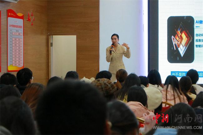 參觀環(huán)節(jié)結(jié)束后,活動進入核心部分——王玉女士的主題講座。王玉女士結(jié)合自身豐富的職業(yè)經(jīng)歷和行業(yè)洞察,圍繞“大學(xué)生多元化發(fā)展路徑”這一主題,進行了深入淺出的分享。她分析了當(dāng)前經(jīng)濟環(huán)境下的人才需求趨勢,指出未來職場不僅需要扎實的專業(yè)技能,更看重跨界融合能力、持續(xù)學(xué)習(xí)素養(yǎng)和創(chuàng)新思維。