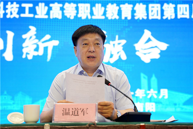 溫道軍做了河南國防科技工業(yè)高等職業(yè)教育集團工作報告。報告首先回顧了自河南國防科技工業(yè)高等職業(yè)教育集團第四屆理事會第一次會議召開以來在人才培養(yǎng)、人員培訓、技術合作和文化交流等方面的工作情況,從國際國內(nèi)形勢、教育事業(yè)發(fā)展環(huán)境等方面分析了職教集團改革發(fā)展面臨的重大發(fā)展機遇,對職教集團下一步的發(fā)展提出新要求,他表示職教集團是多方參與、攜手共進的平臺,軍民融合、產(chǎn)教融合的紐帶,校企合作、協(xié)同創(chuàng)新的橋梁,服務需求、促進發(fā)展的載體,要切實推動集團成員單位務實合作不斷走向深入,共同為實現(xiàn)集團各成員單位高質量發(fā)展而努力奮斗,以優(yōu)異成績?yōu)榻h100周年獻禮!
