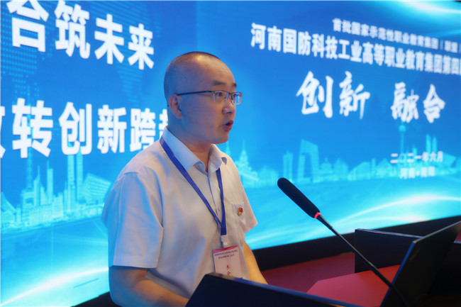 王偉首先代表承辦單位致辭,他表示河南國防科技工業(yè)高等職業(yè)教育集團自2006年成立以來,已經(jīng)走過了15年的光輝歷程。15年來,集團堅持以整合優(yōu)化教育資源、貫通培養(yǎng)技術技能人才、推動產(chǎn)學研深度融合、服務行業(yè)企業(yè)和區(qū)域發(fā)展為宗旨,充分發(fā)揮各方成員的優(yōu)勢,集團以“利益共同體”為特征的校企深度融合、協(xié)作育人體制機制更加健全。本次會議的召開,必將進一步鞏固集團各成員單位間的傳統(tǒng)友誼,加強相互聯(lián)系與交流,深化對職業(yè)教育“提質培優(yōu)、增值賦能”的共識,促進校企合作、產(chǎn)教融合、共贏發(fā)展,擦亮職教集團品牌,更好地服務于我省軍民融合深度發(fā)展和區(qū)域經(jīng)濟高質量發(fā)展。