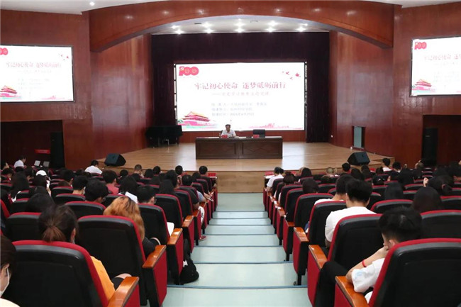 李喜安以“牢記初心使命逐夢砥礪前行”為主題,圍繞黨史學習“為什么學”“學什么”“怎么學”三個方面為全校師生作了一場精彩的報告,上了一堂生動的黨課。他從“為什么學”的層面,深刻闡釋了黨史學習教育的重大意義,以史鑒今資政育人,黨史學習教育是凝心聚能的不竭動力;汲取營養(yǎng)涵養(yǎng)當下,黨史學習教育是干事創(chuàng)業(yè)的的溯口源頭;辨明榮辱認清興衰,黨史學習教育是永葆共產黨政治本色的堅強堡壘。他從“學什么”的層面,系統(tǒng)梳理了黨在不同時期孕育出的精神族譜,通過翔實的數據、鮮活的事例,深入講述了黨的光輝歷程中造就的精神譜系,激勵廣大黨員賡續(xù)紅色血脈,永葆初心本色。他還從“怎么學”的層面,明確指出了開展黨史學習教育的方法路徑,聚焦黨史學習教育16字目標,原原本本學習領會,爭當學史悟思的排頭兵、增信崇德的排頭兵、為民辦事的排頭兵、勇開新局的排頭兵;圍繞立德樹人根本任務,認認真真育人鑄魂,協(xié)同推進課程育人、文化育人、踐行育人,要用知識體系教、用價值體系育、用創(chuàng)新體系做,構建全方位育人大格局;立足學校發(fā)展實際,孜孜不倦創(chuàng)新服務,領先擔責,創(chuàng)新創(chuàng)造,敢闖敢拼,切實將學院科技成果及時轉化運用到社會建設中去,培養(yǎng)出更多的創(chuàng)新應用型人才。