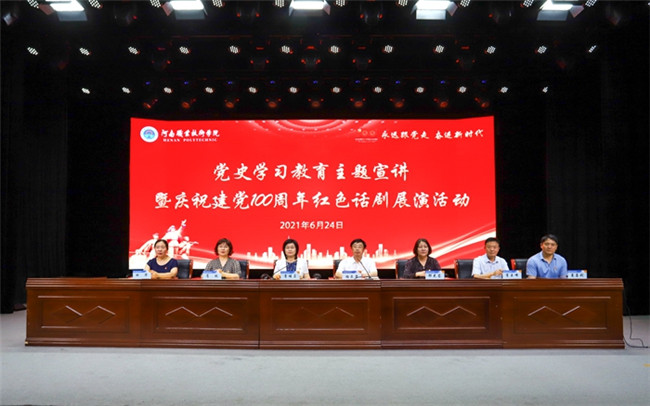 中新河南網(wǎng)6月26日電(魏豪 吳德強(qiáng))崢嶸歲月心向黨,光輝歷程譜華章。6月24日下午,河南職業(yè)技術(shù)學(xué)院在音樂(lè)廳隆重舉辦“永遠(yuǎn)跟黨走 奮進(jìn)新時(shí)代”黨史學(xué)習(xí)教育主題宣講暨慶祝建黨100周年紅色話劇展演活動(dòng),進(jìn)一步推動(dòng)學(xué)校黨史學(xué)習(xí)教育走深走實(shí),為建黨100周年獻(xiàn)禮。