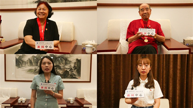 離退休老黨員代表和師生代表接受新聞中心采訪