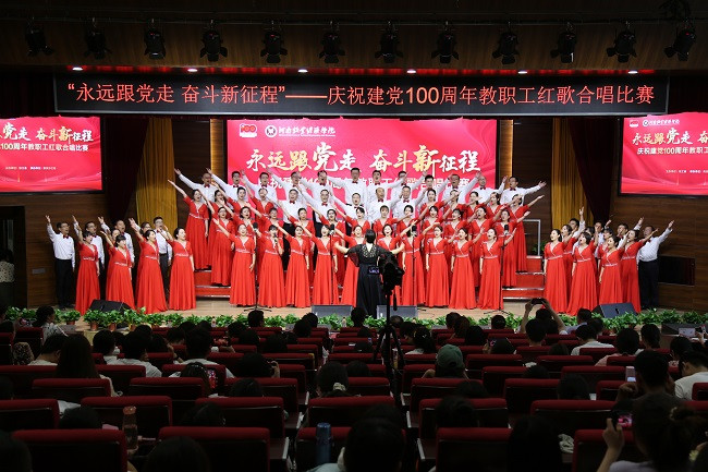 胸懷千秋偉業(yè),恰是百年風(fēng)華。唱響百年歲月,傳承紅色基因,全體教職工將堅定信念跟黨走、擔(dān)當(dāng)作為新時代、立足崗位做貢獻(xiàn),以昂揚姿態(tài)投入學(xué)校建設(shè)新征程,不斷書寫新的歷史、創(chuàng)造新的輝煌。