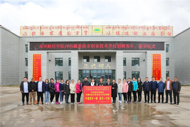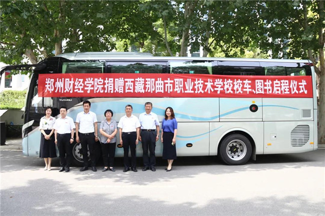 交流會后,雙方在學(xué)校一號教學(xué)樓前舉行了捐贈儀式。鄭州財經(jīng)學(xué)院向那曲職校捐贈客車一輛、圖書一萬冊。雙方交流期間,捐贈圖書搭載捐贈客車,已在6月23日由專業(yè)人員駕駛從鄭州財經(jīng)學(xué)院出發(fā),開往那曲。