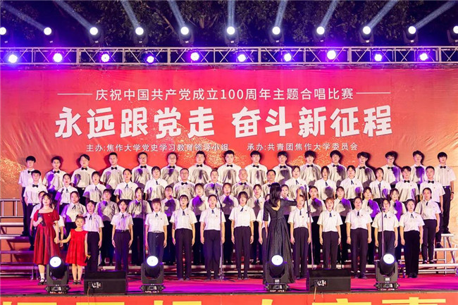 唱響百年輝煌,震撼歌聲中回蕩著昂揚拼搏的力量;凝聚奮進力量,悠揚旋律里飛揚著憧憬未來的希望。“永遠跟黨走 奮斗新征程”這堂“音樂黨史”課讓焦作大學師生通過聆聽紅色音樂,從百年黨史中汲取奮進力量,深刻緬懷篳路藍縷的歲月,回溯激情燃燒的年代,進一步傳承紅色基因,賡續(xù)精神血脈,始終堅守初心使命,在全面建設社會主義現代化國家新征程中,在學校“五化”建設、“四校”聯(lián)建、“雙高”工程建設中,不斷書寫焦作大學高質量發(fā)展的嶄新篇章,以優(yōu)異成績迎接建黨100周年。
