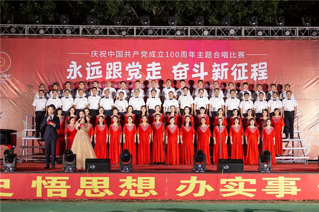 舞臺上,來自全校各單位的12支參賽隊和2個表演隊的師生深情禮贊建黨百年,用合唱、舞蹈、朗誦、太極拳等表演形式生動演繹了一堂傳承紅色經典、汲取精神力量的“黨課”和“思政課”。演出現場高潮迭起,掌聲不斷,精彩的演出使師生們真切感受到中國共產黨一百年奮斗歷程的光輝燦爛,感受到中國共產黨為人民服務的不變初心,感受到中國共產黨奮進新時代的磅礴力量,進而深刻領悟了“中國共產黨為什么‘能’,馬克思主義為什么‘行’,中國特色社會主義為什么‘好’,進一步增強了對馬克思主義、共產主義的信仰,增強了對中國特色社會主義的信念,增強了對實現中華民族偉大復興的信心。“