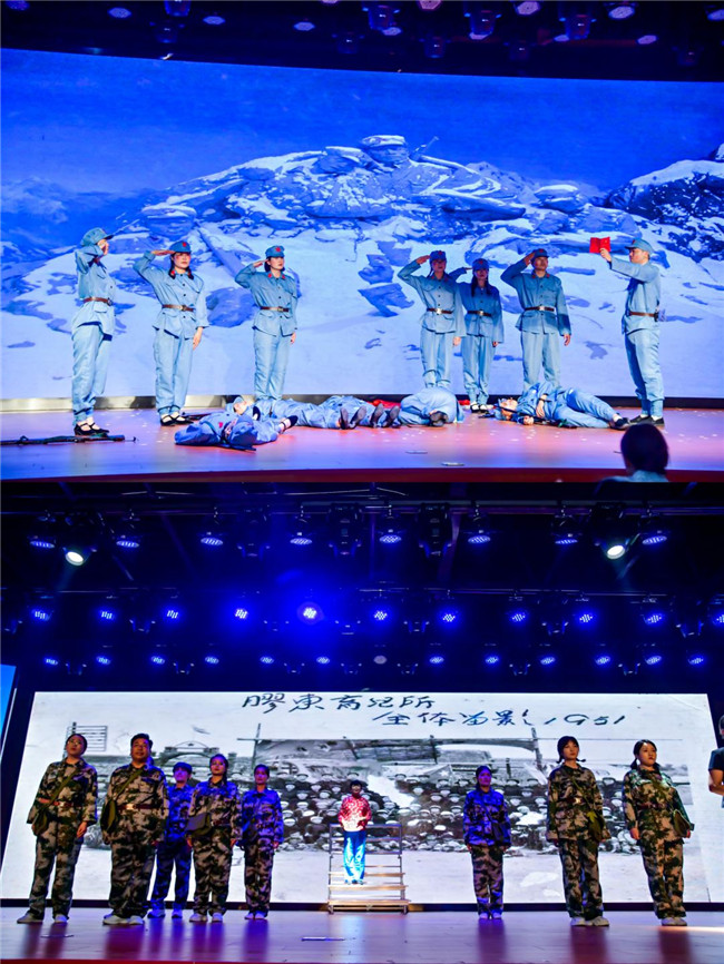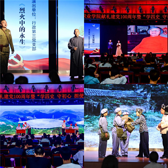 此次大賽是該院黨史學(xué)習(xí)教育系列活動之一,是校園思政課堂的延續(xù),它將黨史故事和真情演繹結(jié)合在一起,起到了很好的育人效果。《風(fēng)雪長征路》講述了長征路上被風(fēng)雪凍斃的紅軍戰(zhàn)士的故事,皚皚白雪飄蕩,戰(zhàn)士們僵硬的尸體矗立其中,畫面震撼人心,讓人動容;為保留革命火種,舍棄自己孩子養(yǎng)育革命后代的《乳娘》故事。孩子們聲聲呼喚表達了對乳娘發(fā)自心底的愛,場面極具震撼力;瞿秋白、鄧稼先、四川8633成功備降的故事串聯(lián)起《星火燎原》,講述了一代又一代革命人的初心與奉獻,同時通過向英雄致敬的方式激勵大家奮勇開拓新時代!短煅壑 逐夢蒼穹》講述了FAST工程首席科學(xué)家南仁東的故事。南仁東為了讓中國射電天文趕超英美,率領(lǐng)他的團隊,在祖國西南的崇山峻嶺中默默奉獻、拼盡全力甚至不惜耗盡自己的生命,終于建設(shè)成全世界最大單口徑射電望遠鏡FAST。整場比賽共13個參賽隊參賽,每支參賽隊用心體會革命人物內(nèi)心世界,動情演繹紅色故事,很好的傳承了紅色精神,賡續(xù)了精神血脈,起到了以史補鈣、以史明理、以史增信的作用,激勵了廣大教師在弘揚精神中攻堅克難、在傳承血脈中開拓前行。