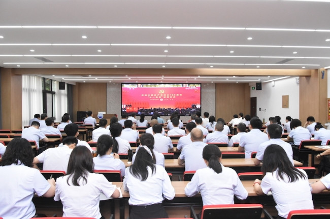 校黨政領(lǐng)導(dǎo)班子成員、科級及以上干部、黨委職能部門全體人員觀看“七一勛章”頒授儀式