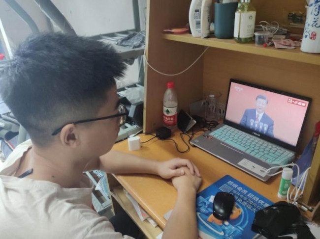 學(xué)生收聽收看“七一勛章”頒授儀式
