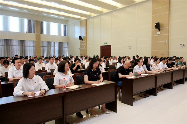 余作斌作了總結(jié)講話,他代表學(xué)校黨委向受表彰的集體和個(gè)人表示熱烈祝賀,向全校廣大黨員致以節(jié)日的問(wèn)候,并對(duì)全校廣大黨員提出殷切希望和明確要求。一是堅(jiān)定理想信念,加強(qiáng)理論武裝。我們要在深學(xué)、深悟、深刻上下功夫,把這一偉大思想蘊(yùn)含的寶貴營(yíng)養(yǎng)轉(zhuǎn)化為對(duì)中國(guó)特色社會(huì)主義的堅(jiān)定信念和對(duì)實(shí)現(xiàn)中華民族偉大復(fù)興的堅(jiān)定信心。二是對(duì)黨絕對(duì)忠誠(chéng),做到“兩個(gè)維護(hù)”。要強(qiáng)化政治擔(dān)當(dāng),把做到“兩個(gè)維護(hù)”作為首要政治任務(wù)、首要政治紀(jì)律,不斷提高政治判斷力、政治領(lǐng)悟力、政治執(zhí)行力,在重大關(guān)頭面前堅(jiān)毅果敢,在大是大非面前堅(jiān)定清醒,在利益誘惑面前堅(jiān)守底線。三是堅(jiān)持結(jié)果導(dǎo)向,自覺(jué)履責(zé)盡責(zé)。樹(shù)立“以結(jié)果論英雄、從過(guò)程找經(jīng)驗(yàn)、用實(shí)績(jī)來(lái)檢驗(yàn)”的工作導(dǎo)向,投身立德樹(shù)人主戰(zhàn)場(chǎng)、投身迎評(píng)促建第一線、投身改革發(fā)展最前沿,推動(dòng)全校各項(xiàng)工作往實(shí)里抓、向目標(biāo)奔。四是夯實(shí)基層基礎(chǔ),筑牢戰(zhàn)斗堡壘。要建好陣地,確保黨員學(xué)習(xí)有場(chǎng)所、活動(dòng)有陣地、作用發(fā)揮有舞臺(tái);要建強(qiáng)支部,把支部建設(shè)成為教育管理黨員的學(xué)校、團(tuán)結(jié)凝聚群眾的核心、攻堅(jiān)克難的堡壘;要建亮品牌,讓黨旗飄起來(lái)、讓黨味濃起來(lái)、讓黨性強(qiáng)起來(lái),使黨建工作始終體現(xiàn)時(shí)代性,把握規(guī)律性,富于創(chuàng)造性。五是全面從嚴(yán)治黨,永葆政治本色。要在主體責(zé)任上加壓加力,管好班子、帶好隊(duì)伍、抓好落實(shí);要在反腐倡廉上做實(shí)做細(xì),突出政治監(jiān)督,嚴(yán)明政治紀(jì)律政治規(guī)矩;要在作風(fēng)建設(shè)上再優(yōu)再?gòu)?qiáng),帶頭弘揚(yáng)焦裕祿“三股勁”、堅(jiān)持“功成不必在我”的精神境界和“功成必定有我”的歷史擔(dān)當(dāng),在攻堅(jiān)中推動(dòng)學(xué)校事業(yè)改革發(fā)展。