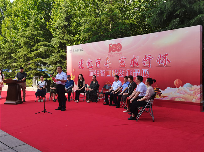 會上,藝術(shù)設(shè)計學(xué)院院長牛玖榮介紹活動籌辦、作品評審與展出情況,介紹書畫攝影展的目的旨在為廣大師生提供充分展示藝術(shù)才華的平臺,讓師生通過大賽吸取藝術(shù)養(yǎng)分,培養(yǎng)師生感受美、鑒賞美和創(chuàng)作美的能力,共同為學(xué)校轉(zhuǎn)型發(fā)展貢獻(xiàn)力量,為黨的生日祝福與禮贊。