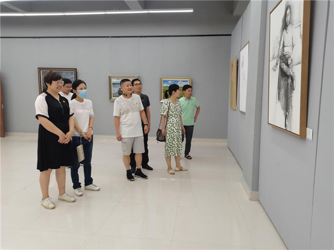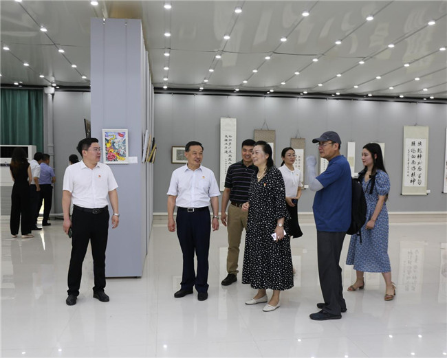 開幕式后,參會領(lǐng)導(dǎo)、師生進(jìn)入藝術(shù)設(shè)計展廳參觀了展出作品。