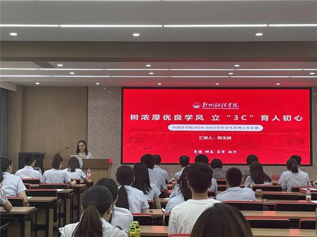 陳靜對(duì)各二級(jí)學(xué)院的工作匯報(bào)表達(dá)了四點(diǎn)感悟:第一對(duì)全體學(xué)管工作者的努力付出致以謝意,肯定了各二級(jí)學(xué)院在思想引領(lǐng)、學(xué)風(fēng)建設(shè)和心理工作等方面取得的一系列成績(jī)和突破;第二在量化考核標(biāo)準(zhǔn)要求下,各二級(jí)學(xué)院的學(xué)生工作管理模式日趨成熟、品牌特色愈加鮮明,學(xué)管隊(duì)伍工作能力不斷提高;第三要以探索和改革踐行創(chuàng)新,強(qiáng)化常規(guī)管理,加大工作總結(jié)力度,提高學(xué)生管理工作質(zhì)量;第四要加強(qiáng)輔導(dǎo)員隊(duì)伍建設(shè),以實(shí)干篤定前行,系統(tǒng)性地開(kāi)展富有學(xué)科自身特色的學(xué)生活動(dòng)和輔導(dǎo)員培訓(xùn),提升工作水平,加強(qiáng)學(xué)生教育管理工作的內(nèi)涵建設(shè)。