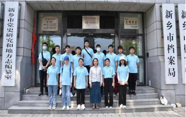 圖為實踐團隊到達新鄉(xiāng)市史志館前合影
