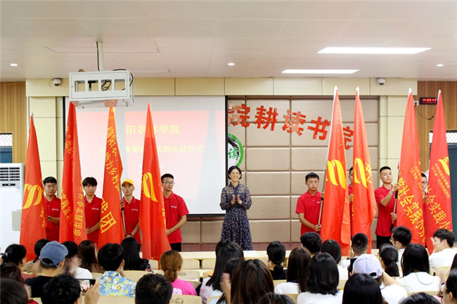 儀式在全體師生齊唱國歌聲中開始,校團(tuán)委書記王鵬介紹了本年度暑期社會(huì)實(shí)踐活動(dòng)“永遠(yuǎn)跟黨走、奮進(jìn)新時(shí)代”的主題,對(duì)活動(dòng)中包含的黨史學(xué)習(xí)、理論宣講、國情觀察、鄉(xiāng)村振興、沿黃實(shí)踐、公共安全、志愿服務(wù)等內(nèi)容作了簡要介紹,并對(duì)活動(dòng)的組織形式、注意事項(xiàng)提出了要求,希望全體師生一起努力,力爭暑期社會(huì)實(shí)踐全覆蓋、出實(shí)效。